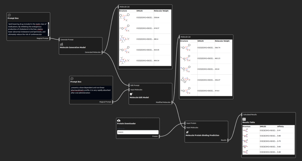 A large model facilitates the creation of novel molecules with specific properties and applications, spanning from pharmaceuticals to materials science. It offers solutions that are not only innovative but also highly practical and impactful.